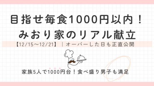 節約 目指せ毎食1000円以内!みおり家のリアル献立【12/15〜12/21】|オーバーした日も正直公開