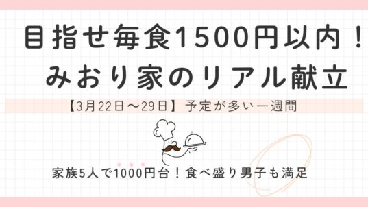 献立 目指せ毎食1500円以内!みおり家【3月22日~29日】のリアル献立|予定が多い一週間