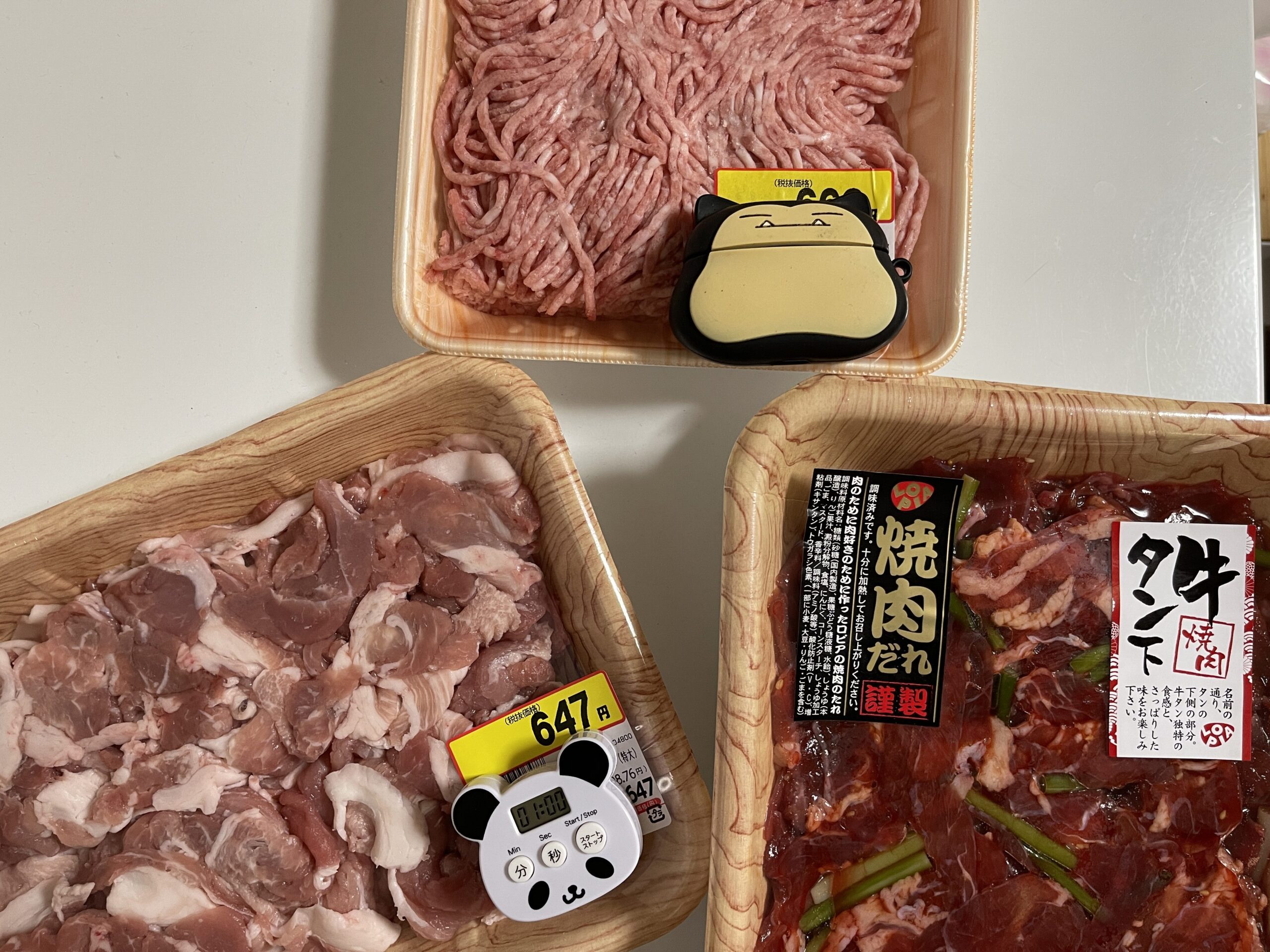 疲れている日は、値引きの味付き肉に頼るのも節約の一部。