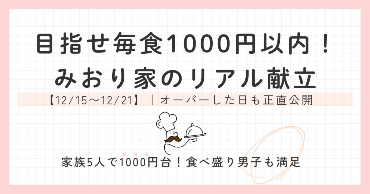 おかず代は毎食1000円以内を目標に、無理のない範囲で節約ごはんを続けています。